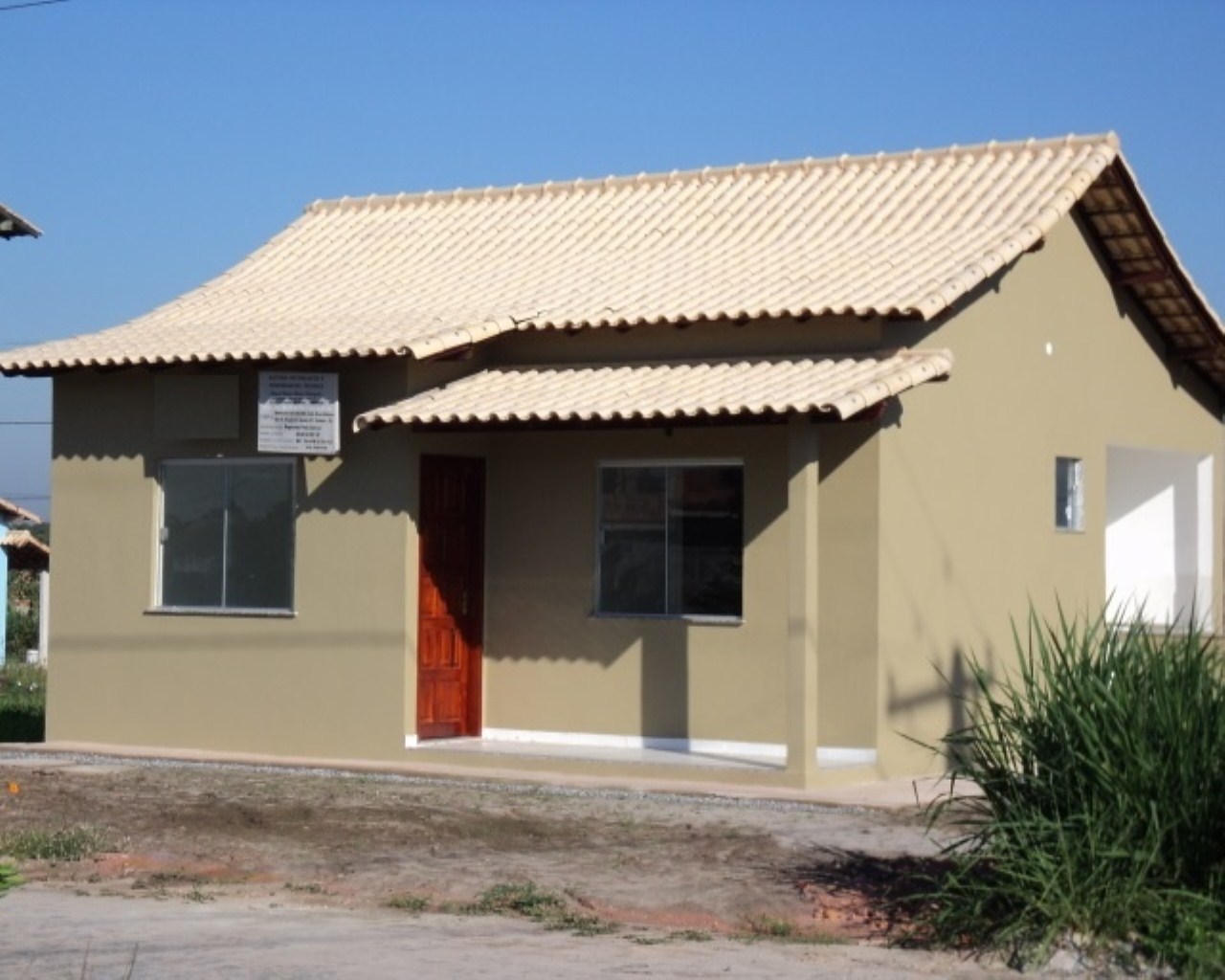 CASA ITABORAÍ - 62m² construção nova. Acabamento de primeira, sala 15m², 2 quartos, cozinha e banheiro - revestimento até o teto, varanda frente e fundos. Janelas blindex, pia granito. terreno de 200m², rua pavimentada, condomínio fechado, portaria, área de lazer com piscinas, campo de futebol, churrasqueira, quiosques, salão de festas.